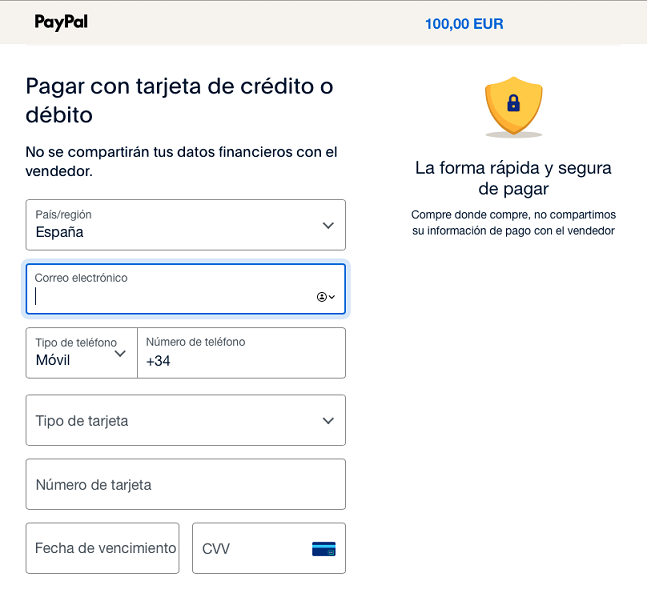 PayPal protege su información financiera con sistemas de prevención de fraudes y de seguridad líderes del sector. Cuando se utiliza PayPal, la información financiera nunca se comparte con el vendedor. Una vez completado el pago, se le enviará el recibo de la transacción por correo electrónico.
