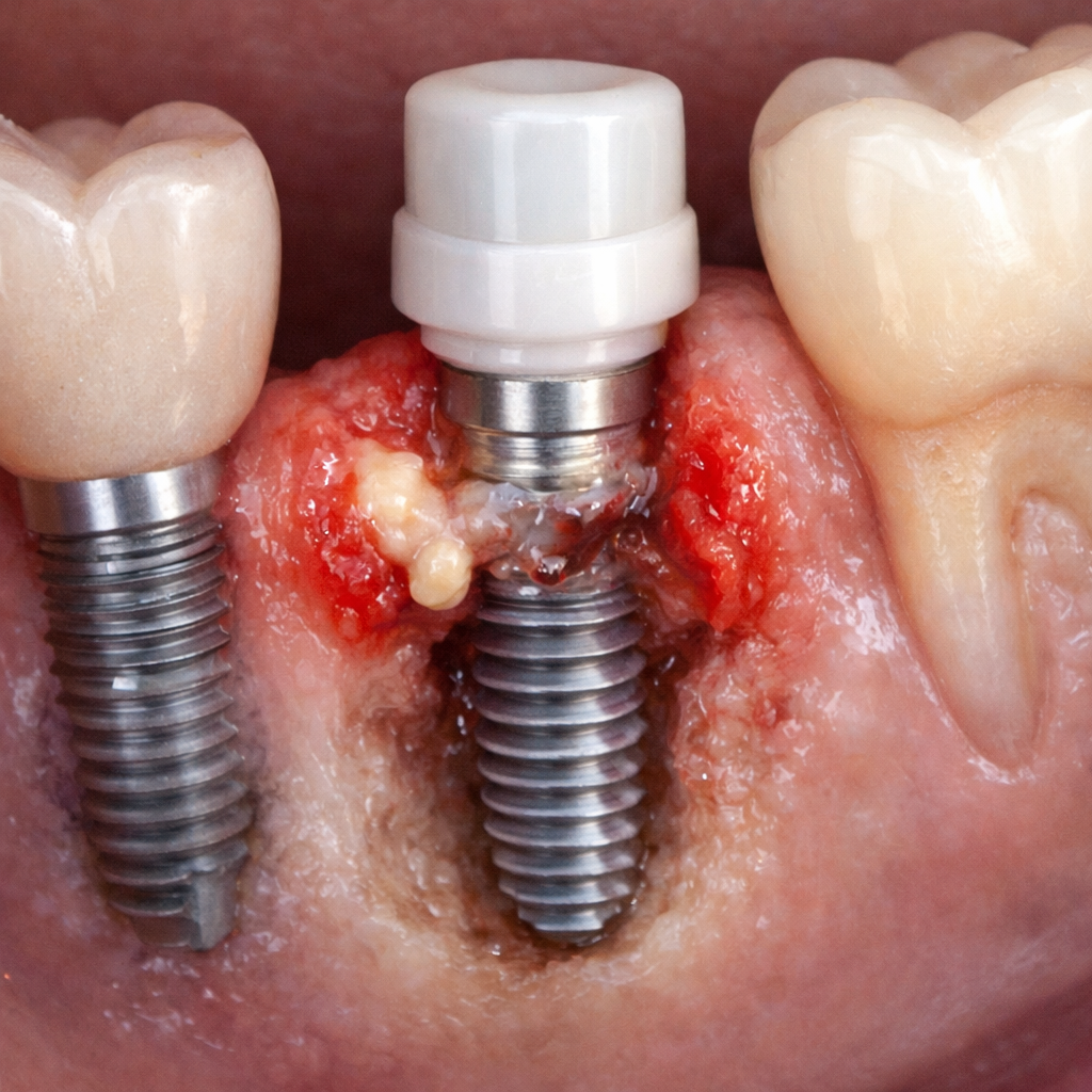La periimplantitis es una de las principales complicaciones en implantología y una causa frecuente de fracaso de los implantes dentales. Se trata de un proceso inflamatorio que afecta a los tejidos que rodean el implante y que, si no se trata a tiempo, puede provocar la pérdida de soporte óseo.